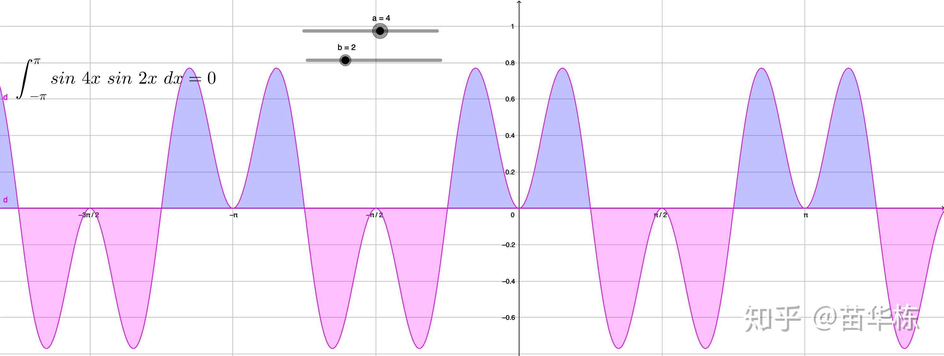 ,在一个周期内,处于X轴上方的面积和X轴下方的面积相等,所以这两个函数的积分为0,也就是互相正交的。还有另外一种情况