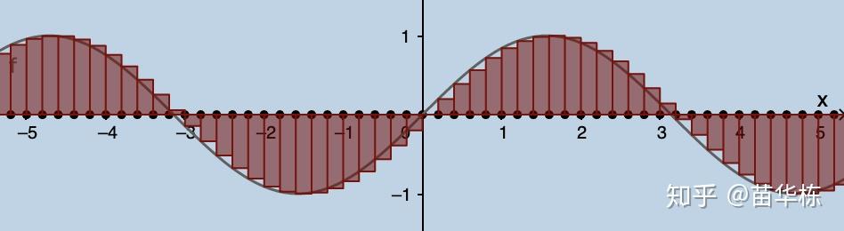 函数在某个区间内部有无穷多个点,无法直接套用内积公式。但我们可以借鉴积分的思想,将函数在一段连续区间分割成一份一份,这样每一份的取值合起来就可以组成一个向量,于是可以用向量的内积来表示两个函数是否正交。如下图