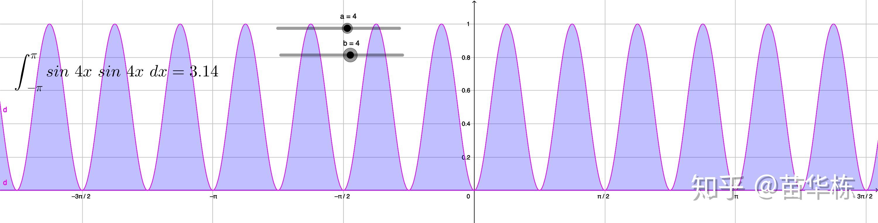 上面这个等式和前面提到的正交基不同的仅仅是频率 ,当积分区间修改成对应的周期范围内,则所有的特性完全一样。