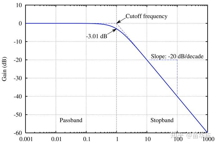 而前面提到的低音效果是什么样的效果呢?就好比家庭影院中的低音炮,它是如何实现重低音的呢?简单来说,可以将它简化成一个低通滤波器,下图是低通滤波器的频率响应曲线。