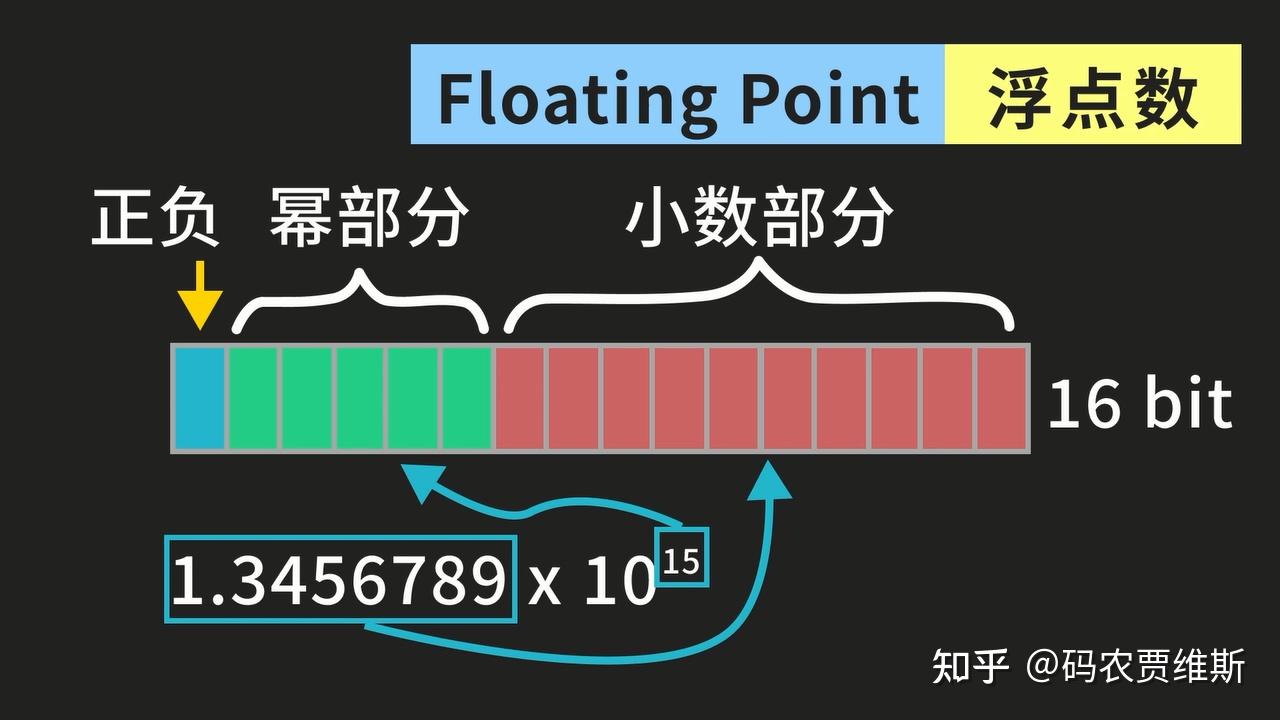 因为它涵盖不了 1 - 50,0000 那么大的数字范围,所以它一般用 16 位 或 32 位的浮点数来存储