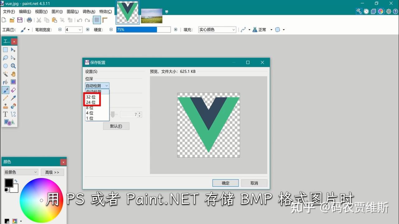 用 PS 或者 http://Paint.NET 存储 BMP 格式图片时
