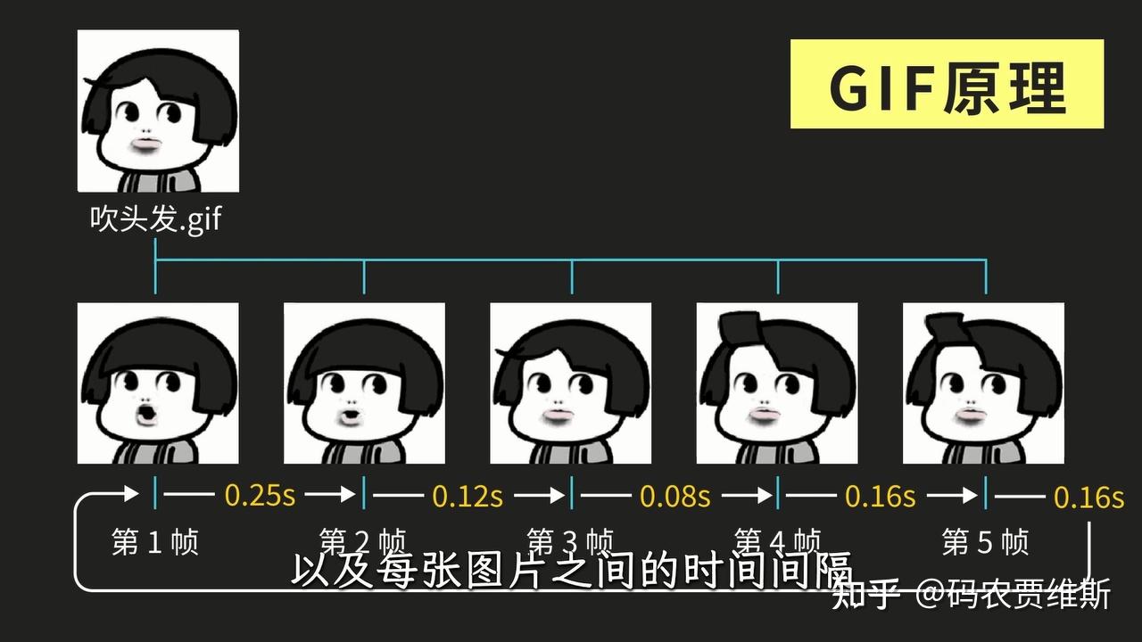 GIF 动画的原理是,在一个 GIF 图片文件中存储了多张图片